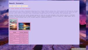 A website about a topic of my choosing (Beach Sunsets) with navigation, a theme, and matching styling using CSS. See styled pictures, text, and a table.