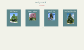 Javascript assignment using a Tree class to display an array of trees. Each tree/image is displayed on home page and when clicked on a modal appears with additioanl information.