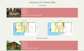 JavaScript assignment parsing a provided JSON file and displaying the content using javascript.